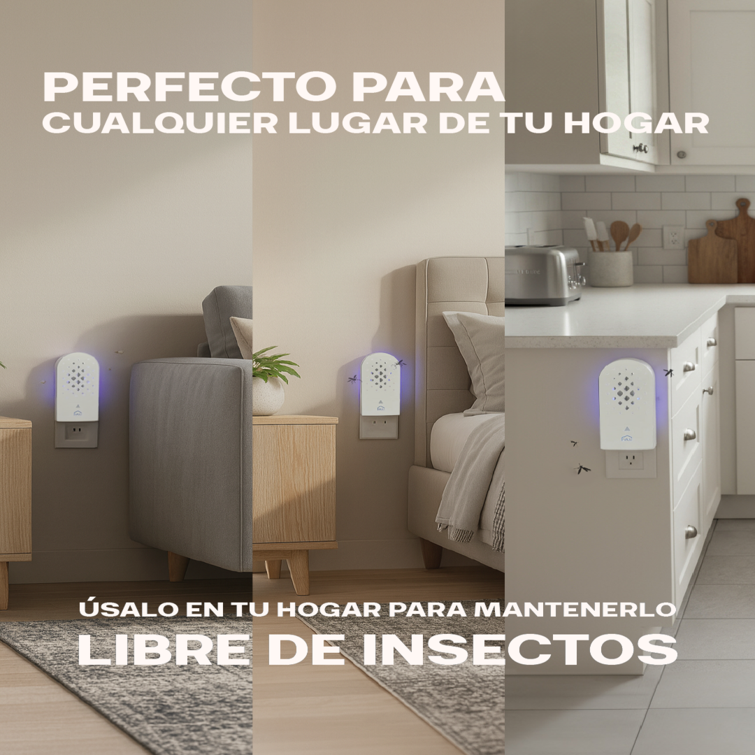 Enchufable con luz LED y trampa de pegamento reemplazable.