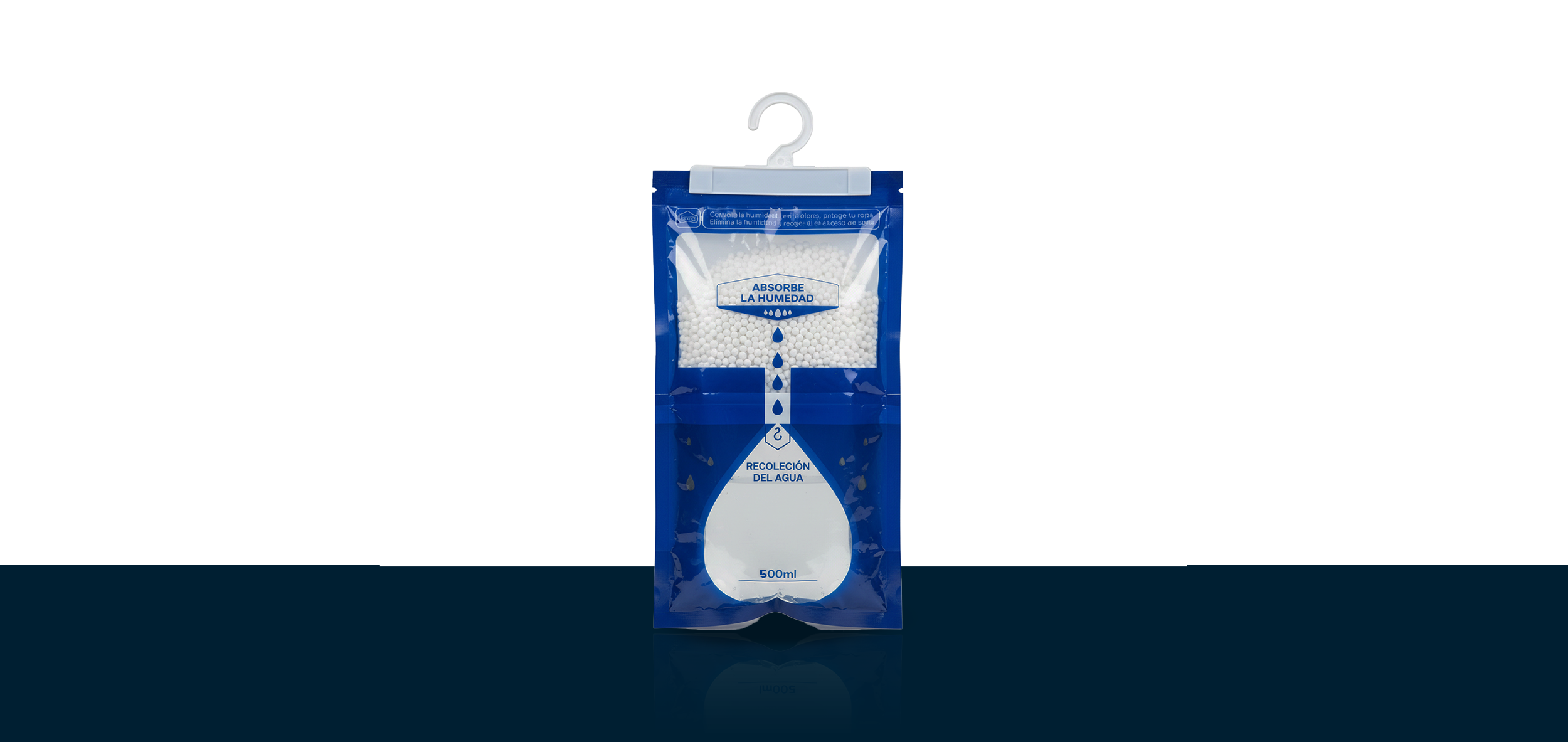 Diseño con bolsa recolectora transparente y papel unidireccional.