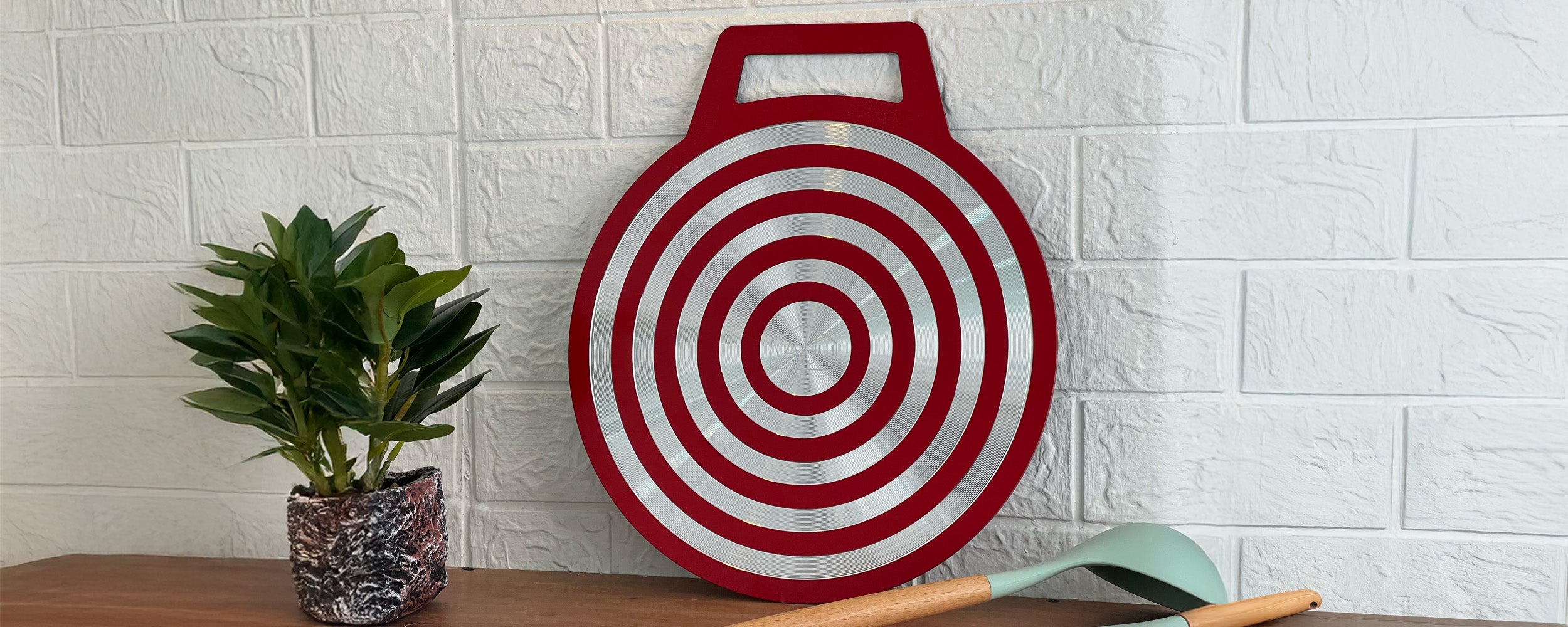 BASE FERROMAGNÉTICO : Diseñada para activar y calentar tu budare de forma instantánea y uniforme en cocinas de Inducción.